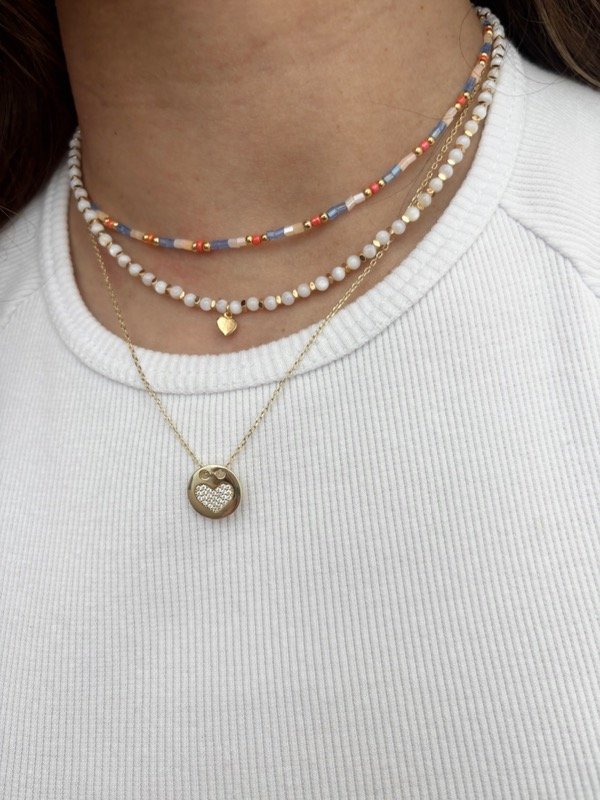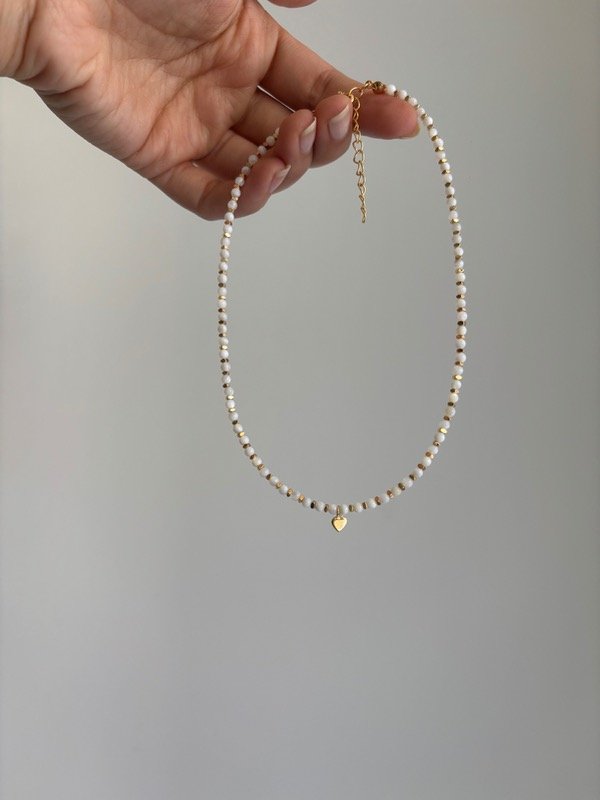 Collar de piedras naturales y dije, con cierre de acero quirúrgico dorado.